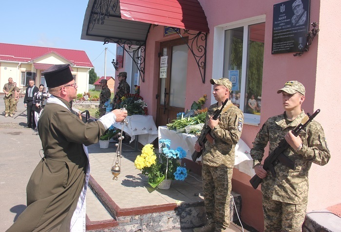 Хвилиною мовчання учасники скорботних урочистостей вшанували пам’ять українських воїнів, які віддали свої життя у боротьбі з російськими загарбниками. А священник Православної церкви України протоієрей Орест Шпак відслужив молебень у пам’ять про загиблих воїнів та освятив меморіальні дошки.