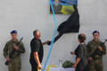 Хлопці тримають прапора із емблемою 59-ї бригади, у якій воював Василь Мазур