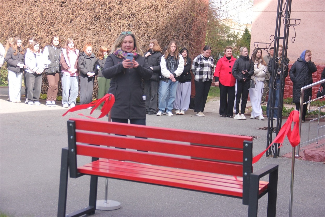 «Червона лавка», встановлена на території технологічного коледжу, має стати символом, який нагадуватиме студентам, гостям навчального закладу, мешканцям міста про те, що у цивілізованому суспільстві не прийнято толерувати насильство.