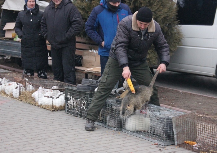 Кролі, нутрії, кури, качки, велетенські півні, кури та гуси та маленькі папужки, голуби.