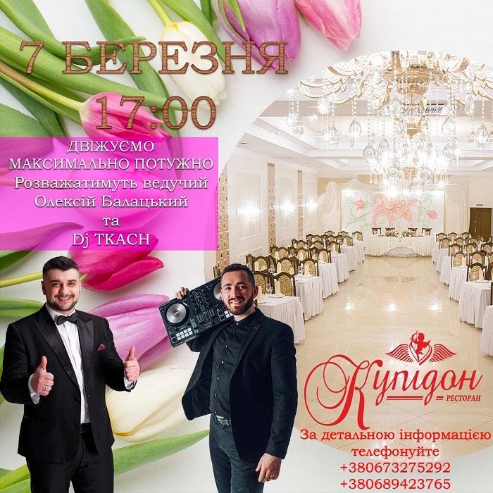 7 березня у ресторані «Купідон» відбудеться святкове дійство, присвячене Міжнародному жіночому дню.